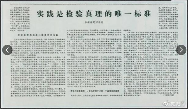 圖為《光明日?qǐng)?bào)》以特約評(píng)論員的名義公開發(fā)表《實(shí)踐是檢驗(yàn)真理的唯一標(biāo)準(zhǔn)》一文。