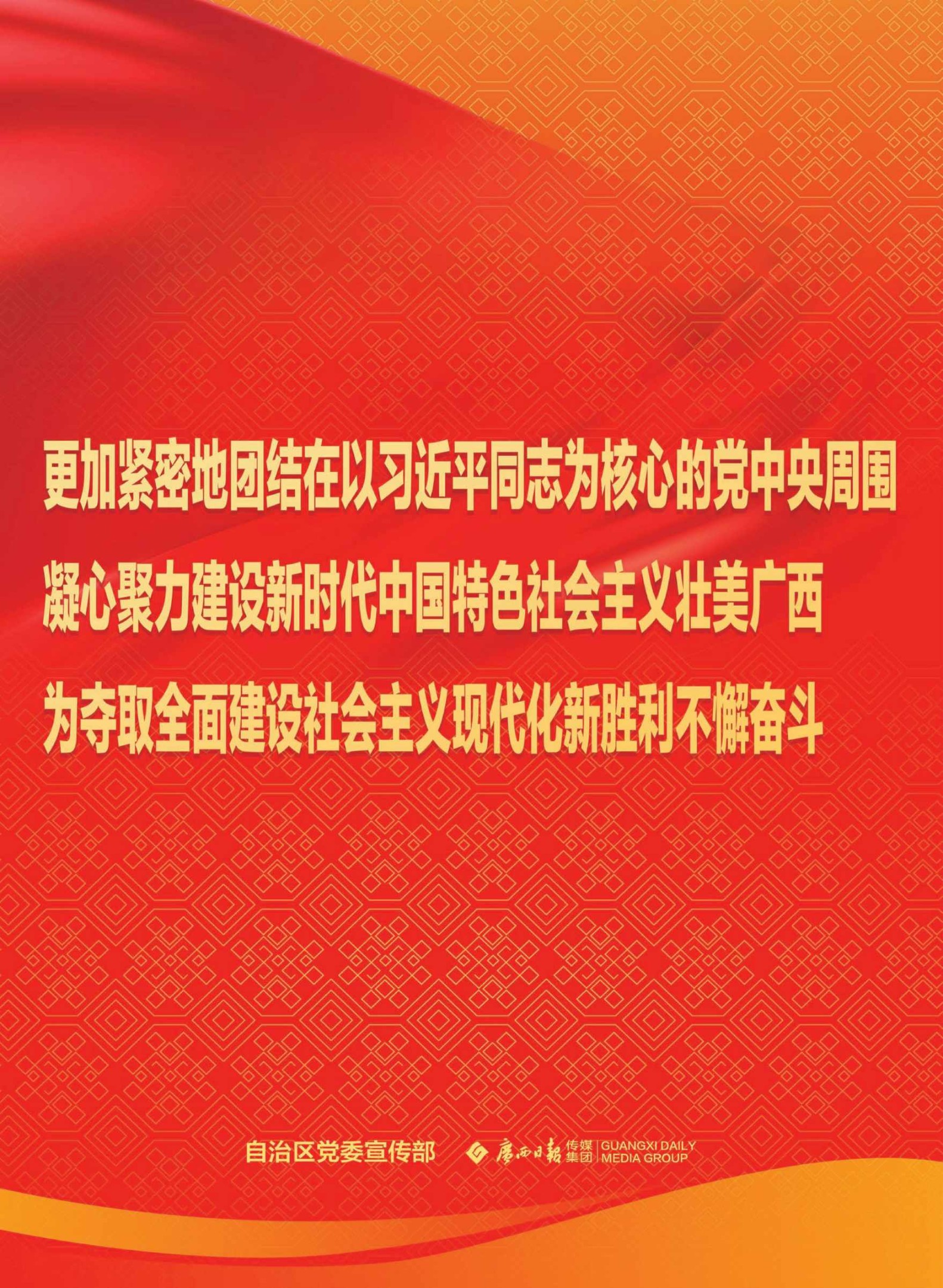 更加緊密地團(tuán)結(jié)在以習(xí)近平同志為核心的黨中央周圍,凝心聚力建設(shè)新時(shí)代中國特色社會(huì)主義壯美廣西,為奪取全面建設(shè)社會(huì)主義現(xiàn)代化新勝利不懈奮斗