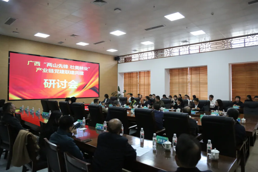 為深入學(xué)習(xí)貫徹黨的二十大和二十屆三中全會(huì)精神,全面貫徹落實(shí)習(xí)近平總書記關(guān)于廣西工作論述的重要要求,特別是2023年12月視察廣西時(shí)提出的“發(fā)展壯大林業(yè)產(chǎn)業(yè)”重要要求,以高質(zhì)量黨建服務(wù)全區(qū)林業(yè)產(chǎn)業(yè)高質(zhì)量發(fā)展,大力發(fā)展林業(yè)新質(zhì)生產(chǎn)力。11月30日,由廣林集團(tuán)承辦的“廣西‘兩山先鋒 壯美林業(yè)’產(chǎn)業(yè)鏈黨建聯(lián)建共建”啟動(dòng)儀式在廣西生態(tài)工程職業(yè)技術(shù)學(xué)院隆重舉行。廣林集團(tuán)黨委副書記、董事、工會(huì)主席覃勇軍,廣西生態(tài)工程職業(yè)技術(shù)學(xué)院黨委委員、紀(jì)委書記許金龍,廣西林業(yè)產(chǎn)業(yè)行業(yè)協(xié)會(huì)常務(wù)副會(huì)長(zhǎng)林桂成出席啟動(dòng)儀式并講話。自治區(qū)黨委組織部,自治區(qū)黨委社會(huì)工作部,自治區(qū)國(guó)資委有關(guān)負(fù)責(zé)同志到會(huì)指導(dǎo)。