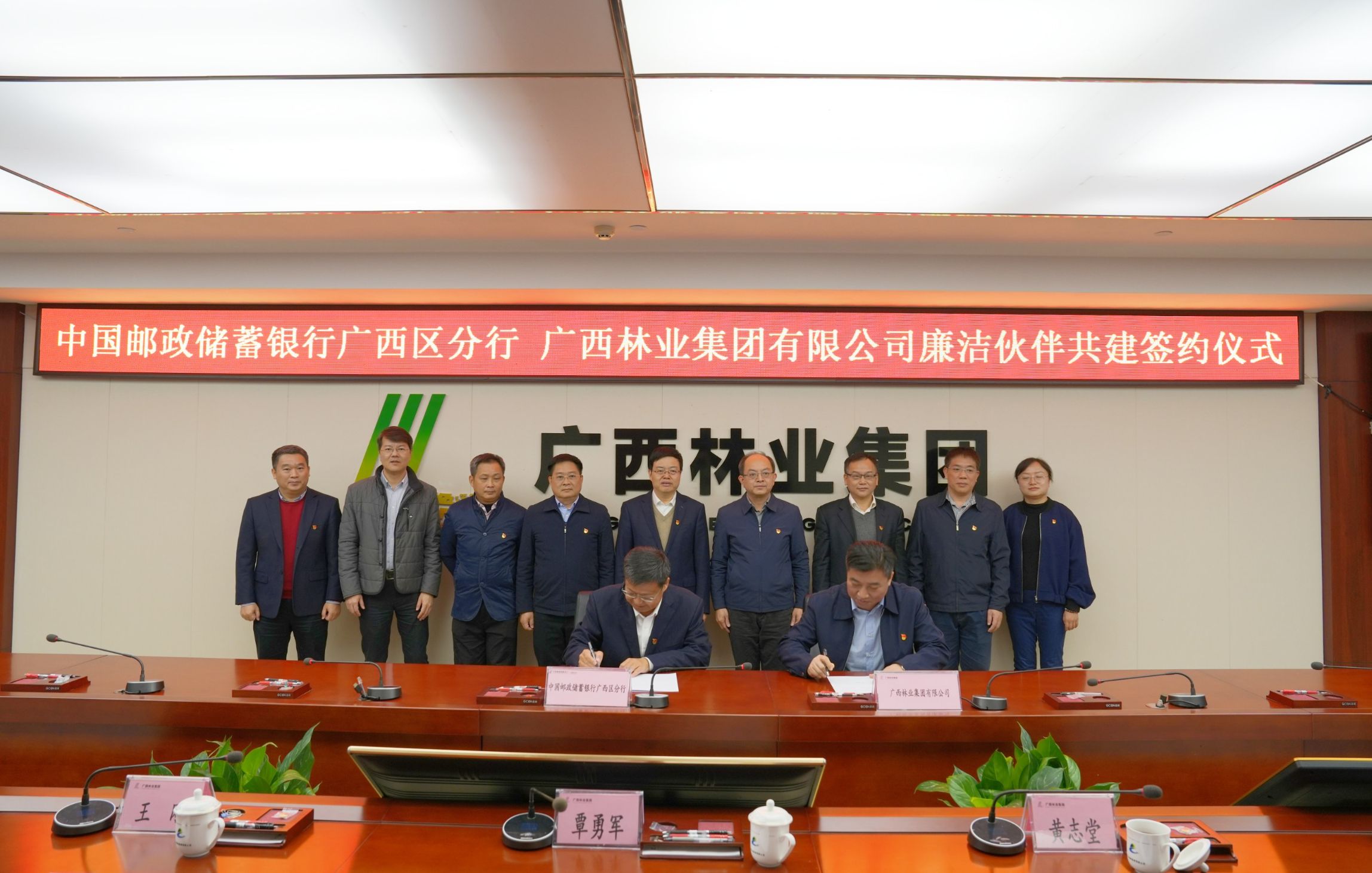 郵儲(chǔ)銀行廣西區(qū)分行紀(jì)委辦公室、金融部、南寧分行相關(guān)負(fù)責(zé)人,廣林集團(tuán)辦公室、自治區(qū)紀(jì)委監(jiān)委駐廣林集團(tuán)紀(jì)檢監(jiān)察組、財(cái)務(wù)部相關(guān)負(fù)責(zé)人員簽約儀式。