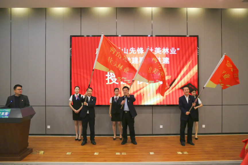 活動(dòng)中,中國(guó)移動(dòng)廣西有限公司、廣西定制家具產(chǎn)業(yè)協(xié)會(huì)、廣西三威家居新材股份有限公司、廣西綠友農(nóng)生物科技股份有限公司四家企業(yè)分別代表央企、協(xié)會(huì)、民企上臺(tái)進(jìn)行經(jīng)驗(yàn)分享。隨后,會(huì)議發(fā)布“兩山先鋒 壯美林業(yè)”產(chǎn)業(yè)鏈黨建聯(lián)建共建倡議書,并舉行“兩山先鋒 壯美林業(yè)”授旗儀式,為單位代表進(jìn)行授旗。