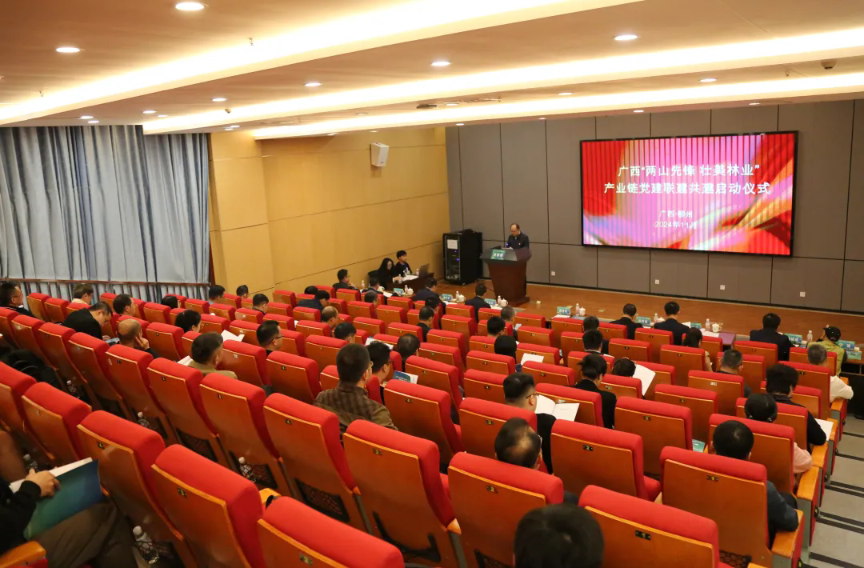 為深入學(xué)習(xí)貫徹黨的二十大和二十屆三中全會(huì)精神,全面貫徹落實(shí)習(xí)近平總書記關(guān)于廣西工作論述的重要要求,特別是2023年12月視察廣西時(shí)提出的“發(fā)展壯大林業(yè)產(chǎn)業(yè)”重要要求,以高質(zhì)量黨建服務(wù)全區(qū)林業(yè)產(chǎn)業(yè)高質(zhì)量發(fā)展,大力發(fā)展林業(yè)新質(zhì)生產(chǎn)力。11月30日,由廣林集團(tuán)承辦的“廣西‘兩山先鋒 壯美林業(yè)’產(chǎn)業(yè)鏈黨建聯(lián)建共建”啟動(dòng)儀式在廣西生態(tài)工程職業(yè)技術(shù)學(xué)院隆重舉行。廣林集團(tuán)黨委副書記、董事、工會(huì)主席覃勇軍,廣西生態(tài)工程職業(yè)技術(shù)學(xué)院黨委委員、紀(jì)委書記許金龍,廣西林業(yè)產(chǎn)業(yè)行業(yè)協(xié)會(huì)常務(wù)副會(huì)長(zhǎng)林桂成出席啟動(dòng)儀式并講話。自治區(qū)黨委組織部,自治區(qū)黨委社會(huì)工作部,自治區(qū)國(guó)資委有關(guān)負(fù)責(zé)同志到會(huì)指導(dǎo)。